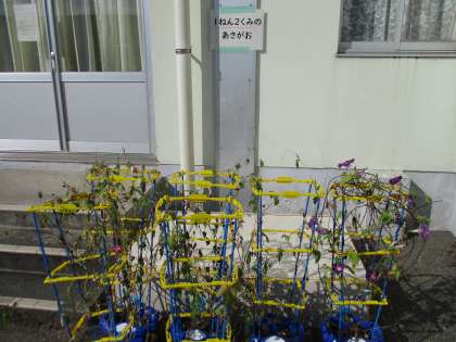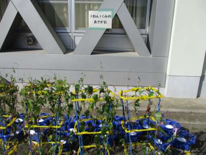 夏休み中は、あさがおのお世話をありがとうございました。9月4日(土)までに、指定された場所にあさがおの鉢を持ってきていただきたいと思います。校舎向かって、左側が1組、右側が2組の置き場となっています。お手数ですが、よろしくお願い致します。