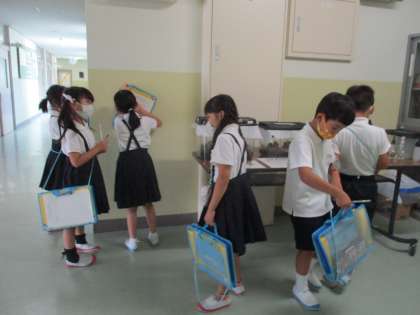 音楽科では、学校内で聞こえてきた音を見つける学習をしています。耳を澄ませると・・・「あ!エアコンがブォ〜っていってるよ」「新幹線が通ったらガタンガタンって聞こえた!」と普段何気なく見逃していた音に気が付いたようです。椅子をひく音や鉛筆の落ちる音等、たくさんの音を見付けていました。