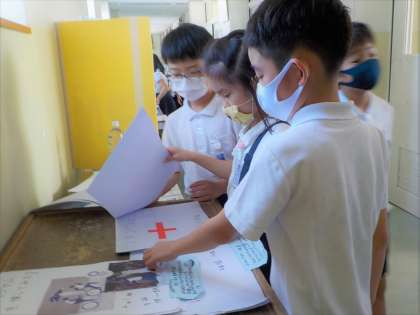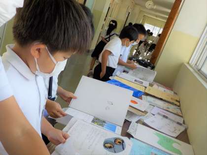 他学年の自由研究を見学しに行きました。学年によって研究内容も違っており、子供たちにとって、新鮮な時間だったようです。