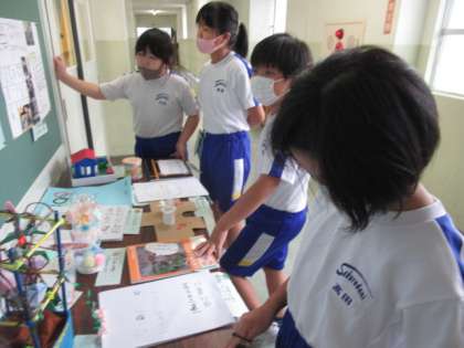 1時間目に、他の学年の自由研究を見学しました。