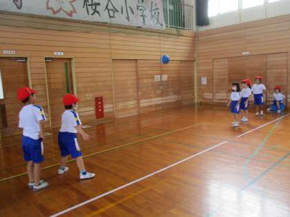 今日は、ボールを相手に向かって投げる運動を楽しみました。下から投げたり転がしたりと、自分のやりやすい投げ方で投げています。
