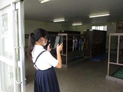 「わたしの大切な風景」の学習を始めました。6年間お世話になった校舎の中で大切な風景を絵にします。クロムブックを持ってどの方向から描きたいかを写真を撮りながら考えました。