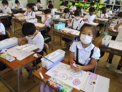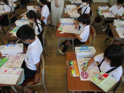 9月9日(木)水彩用具を使ったよ 1年生