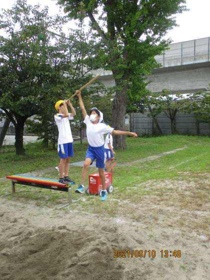 今日は、「助走」「ふみきり」「空中の姿勢」「着地」など、それぞれの課題に合わせて、練習を行いました。