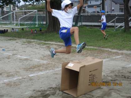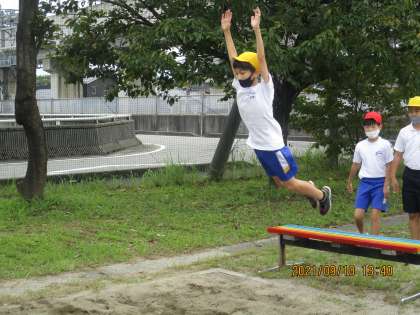 体育科では、「走り幅跳び」に取り組んでいます。
