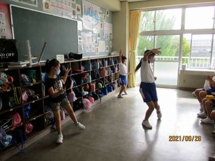 さくらっ子タイムの時間にダンス係の発表がありました。曲に合わせてとっても上手にダンスをしていました。知っている子供達もたくさんいましたが、ダンス係は朝の時間や休み時間などの空いている時間に自主的に練習に取り組んでいました。頑張った成果が、みている子供達の反応やダンス係の子供達の楽しそうな笑顔から感じました。次回も別の曲でダンスを考えているようです。楽しみですね。