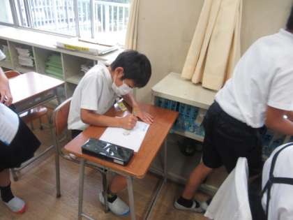 クイズ係は、ほぼ毎朝クイズを出していますが、今回は問題数を増やして解答用紙を用意しました。クイズに苦戦している姿も見られましたが、楽しそうに取り組んでいました。