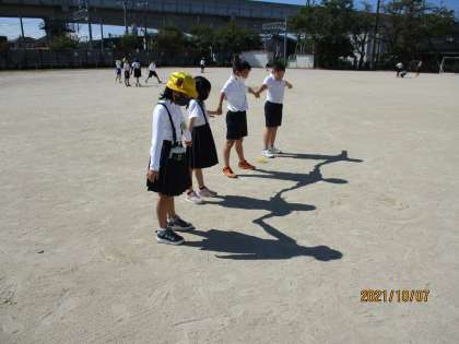 かげおくり日よりだったので、みんなで外に出てかげおくりをしました。いろいろなポーズをしたり、全員でしたりしました。かげおくりが見えると「わ〜〜っ」「「すごい!」「見えた!」と喜んでいる3年生でした。残念ながら見ることができなかった人はまた、かげおくりにチャレンジをしてみてくださいね。