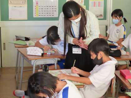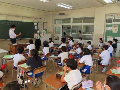 5時間目の外国語活動は、新しいALTの先生との初めての授業でした。今回は、時間や生活についての英語に慣れ親しみました。