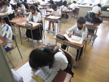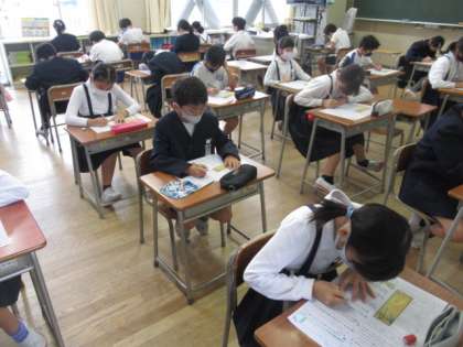 1時間目の国語科では、「ごんぎつね」のテストをしました。