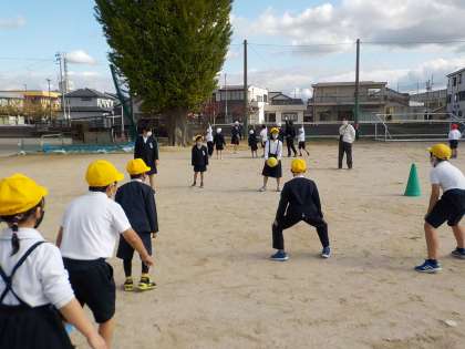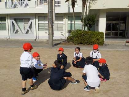 青空の下、今日のさくらっ子タイムは縦割り班ごとのなかよしタイムでした。今日は、青団が体育館で、あとの団はグラウンドで活動しました。ハンカチ落としやころがしドッジボール、だるまさんがころんだ等、6年生を中心にして、楽しそうに活動していました。活動の終わりにはふりかえりの時間を取り、感想を言い合ったり、次回の計画を立てたりしていました。