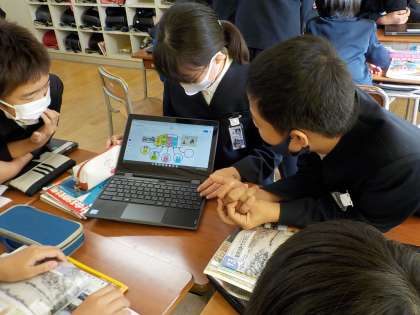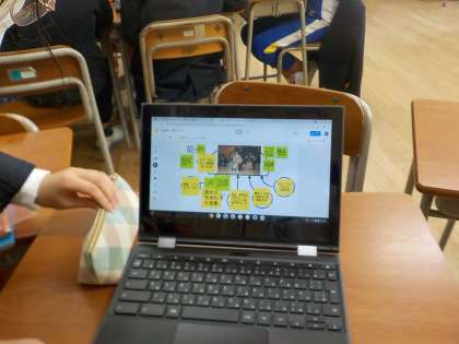 社会では、室町文化をジャムボードにまとめ、友達に発表しました。発表する友達の方に体を向け、反応しながら聞いていました。現代につながる室町文化の特徴を知ることができました。