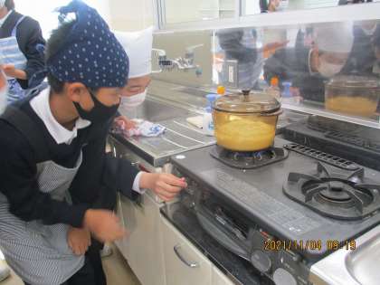 家庭科の調理実習では、お米を炊きました! 火加減が大事です。