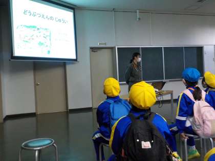 ファミリーパークでは、動物園の獣医さんのお話をしていただきました。人間と同じように動物もけがをすることや病気をすることがあり、そのときにどのようにして動物たちを助けているのかを、スライドや動画でわかりやすく教えていただきました。なかなか知ることができない話も聞かせていただけて、とっても貴重な時間でしたね。