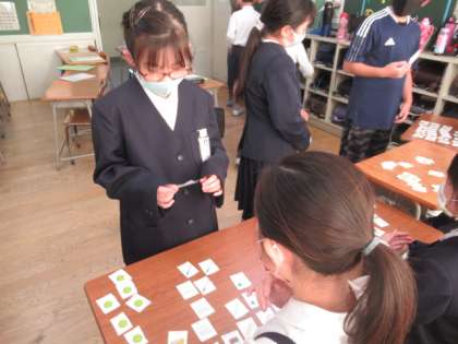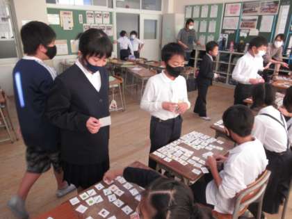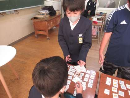 6時間目の外国語活動では、文房具カードを使い、文房具を売る人と買う人に分かれてお買い物をしました。