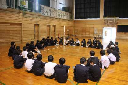 練習を終えた後、輪になって学びの発表会に向けて、自分の思いを語り合いました。