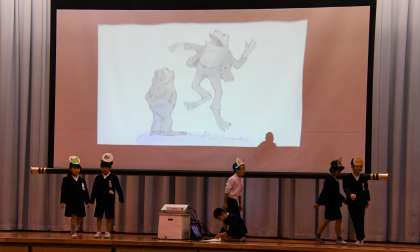 学びの発表会にむけて最後の練習をしました。子どもたちは、「ドキドキする〜!だけど、お家の人にがまくんとかえるくんの世界を届けよう!」と、緊張しながらも、がんばる気持ちを高めていました。明日は、子どものたちのがんばりを温かく見守って頂けると幸いです。