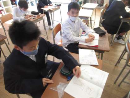 今回は、三角定規やコンパスを使って平行四辺形をかく方法を学びました。