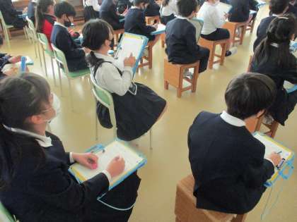 6月にもセミのお話をしていただき、その際に3年生は「いきもの調査隊」として任命されました。今回は、今年の3種類のセミの鳴き声はいつから聞こえ始めたのかの結果を発表していただきました。呉羽山でよく聞こえるセミと学校のまわり(町)でよく聞こえるセミがいることやいつからセミが鳴き始めたのか、3年生の調査の結果を教えていただきました。調査した3年生、さらに頑張って取り組んだみなさんには素敵なプレゼントがありましたね。調査についてのホームページのQRコードも今日いだきましたので、ぜひお子さんとご覧ください。
