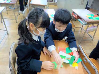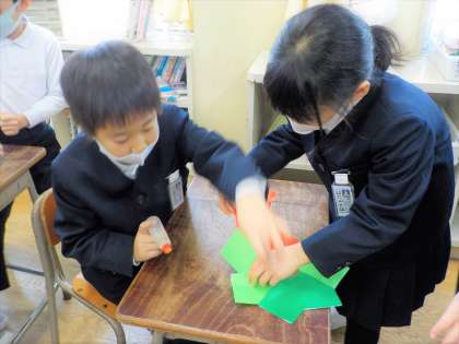 もうすぐクリスマス!ということで、みんなでクリスマスリースを作っています。今日は、土台となる部分を作りました。組み立てるのが少し難しいのですが、近所の人と声をかけ合って作っていました。すてきです。来週は、いろいろな飾りをつけていきます。