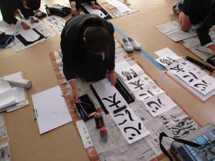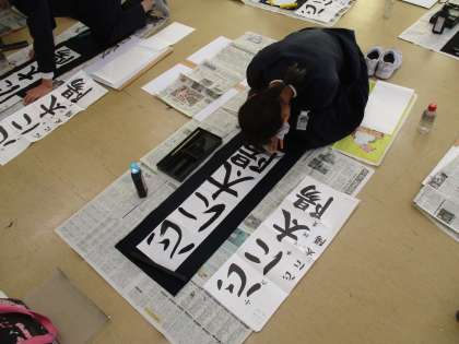 6年生の書初は、「心に太陽」です。お手本をよく見て、一画一画を丁寧に書いていました。力強い作品になるように、学校でも練習していきます。