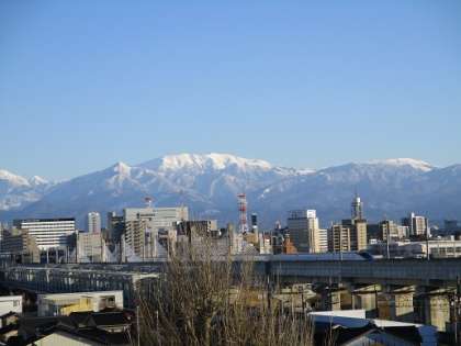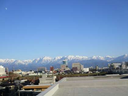 今日は、朝からよく晴れて気持ちのよいお天気でした。青空に立山連峰がくっきりと映えて見えました。写真は、本校屋上からの眺めです。