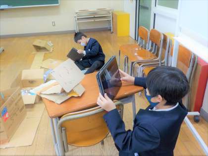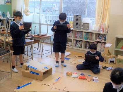 今日は生活科で作ったおもちゃの片付けをする日でした。残しておきたい気持ちでいっぱいの子どもたちでしたが、代わりに写真や動画で自分のおもちゃを残しました。友達に遊んでいる姿を撮ってもらったり、友達と作ったものを並べて撮ったりしていました。写真や動画には子どもたちの思いがたくさん込められているのだなと思います。クロムブックを持ち帰った際に、ぜひごらんください。