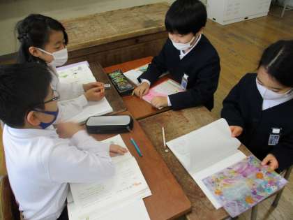 冬休みどのように過ごしたのか、思い出をグループごとに話しをしました。頑張った思い出、冬らしい雪に関する思い出など、色々な思い出が出てきました。友達に質問してさらに詳しく聞くなど、各グループごとに話が盛り上がっていました。