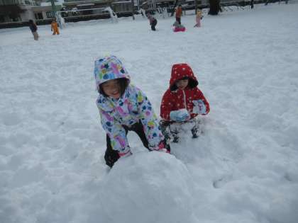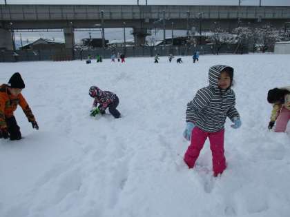 雪合戦をしたり、大きな雪玉を作ったりと、夢中になって楽しんでいます。