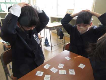 6時間目の外国語活動では、カルタゲームや実際に体を動かす活動をして、学校内の場所や道案内の英語に慣れ親しみました。