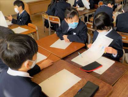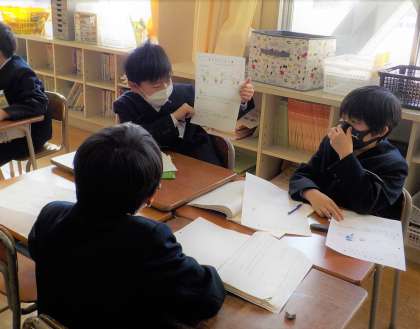 昨日作った「あそび方せつ明書」をグループのみんなに発表しました。「〜のところがおもしろいね」「○○っていうルールを付け加えたらもっとおもしろくなりそう」などと、友達が紹介した遊びのおもしろいところを伝えたり、自分たちのオリジナルの遊びに変えたりしている姿もありました。