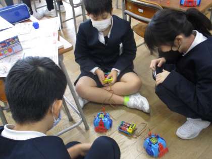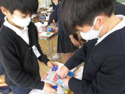 電磁石の学習のまとめとして、電磁石のはたらきを利用したフットサルロボの製作に取り組みました。