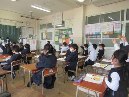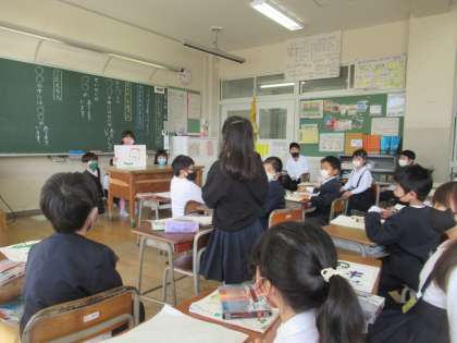 ことばを見つけようの単元では、あることばの中から違うことばを探すクイズを出し合いました。