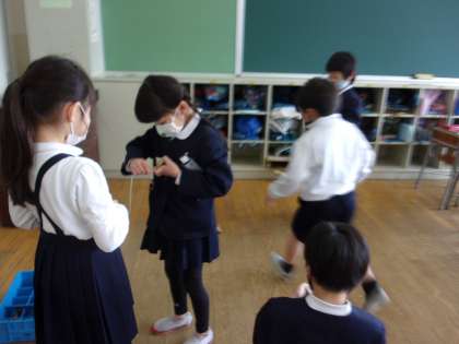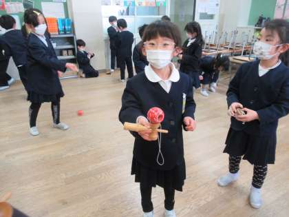 「難しい〜!」といって苦戦していましたが、上手な友達に教えてもらいながら楽しんでいました。