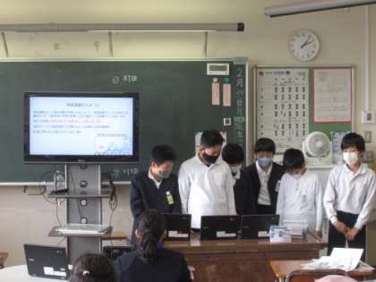 今回は、クラスで発表を見合い、本番の動画撮影に向けて、よかったところや改善点を伝え合う時間としました。