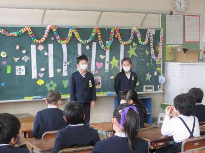 2年生として最後の学級集会。どの活動もとても楽しそうでした。最後の感想コーナーでは、「みんなが一生懸命準備してくれたからこんなに楽しかったんだと思う」「こんなに楽しいことをしてくれたみんなにありがとうの気持ちです」と話す子どもたちの姿を見て、それぞれの頑張りが、クラスみんなの本当の楽しさにつながるということを、最後に感じることができたのではと思いました。