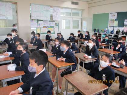 5年生さんから、オンラインでクラブを紹介していただきました。工夫たくさんのスライドを見ることが出来て、楽しみながらも真剣にみていました。