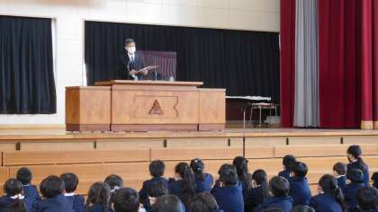 校長先生からは、「教えて、助けてと言い合える温かい学校」を合言葉に、何か困ったときがあれば、お互いに考えを聞き合い、みんなで乗り越えていく学校にしていきましょうと話がありました。