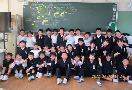 今日は、それぞれが考えてきたことをもとに「どんな学級にしていきたいか(クラスの夢)」について、話し合いました。初めての話合い活動でしたが、自分の思いや考えを全員が伝えることができました。「こんなにうれしい気持ちになったことはない」とつぶやく子供もいました。全員発表を記念して、クラス写真を撮りました。