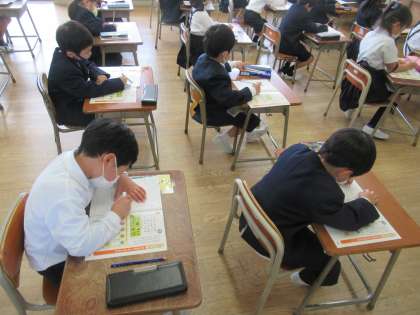 4月13日(水) 名前を書きました 1年生 公開日 2022/04/13 更新日 2022/04/13 1年生のページ 国語の学習では、ノートに名前を書く練習をしました。先生の書いた字をなぞったり、自分で書いたりしました。