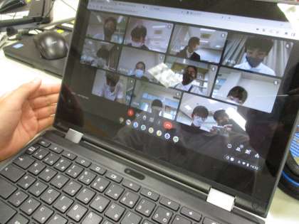 5年生と6年生が直接顔を合わせることはできませんでしたが、クロムブックの画面越しに互いの思いを語り合いました。気合十分でした。