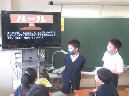 運動係はルール説明用のスライドを作成するなど、様々な工夫をしていました。
