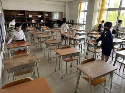 「使う前より美しく」を心がけ、進んで机・椅子の整頓を行う子供たちです。