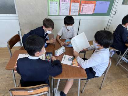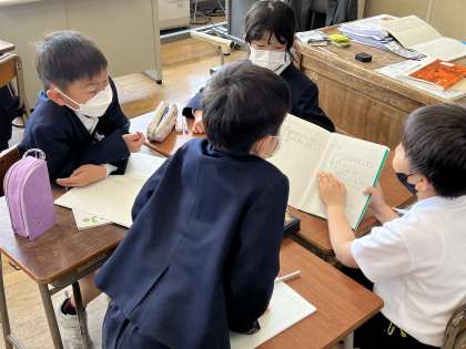 自分の考えをノートに書いた後、グループで話し合いました。