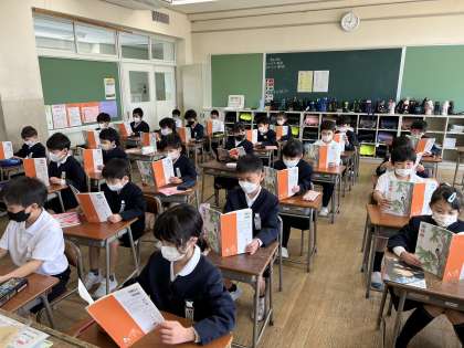 その後、みんなで初めて音読をしました。初めて読む文章でしたが、上手に音読できました。明日は、更にすらすら読めるようになるといいですね。