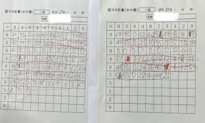 百マス計算を始めて、今日で5回目が終わりました。