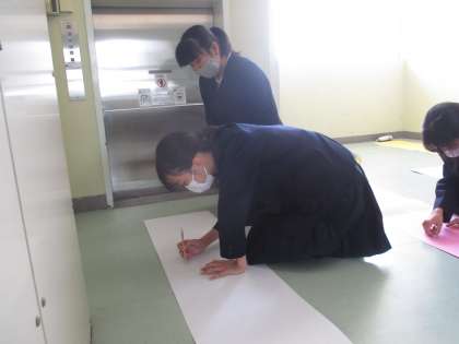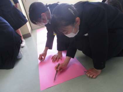 生き生きタイム、団のスローガンづくりをしている6年生たちを見つけました。