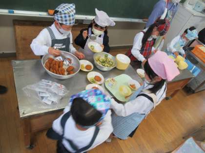 給食の準備にも慣れてきたようです。給食当番も、上手に配膳しています。