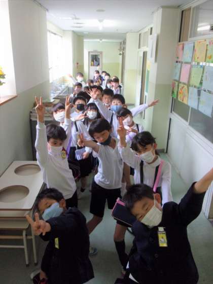 約束した時間に教室の前に行くと自分たちで並んでいました。記念の1枚です!