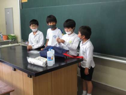 生き生きタイムには、科学係の企画した「スライム作り」がありました。